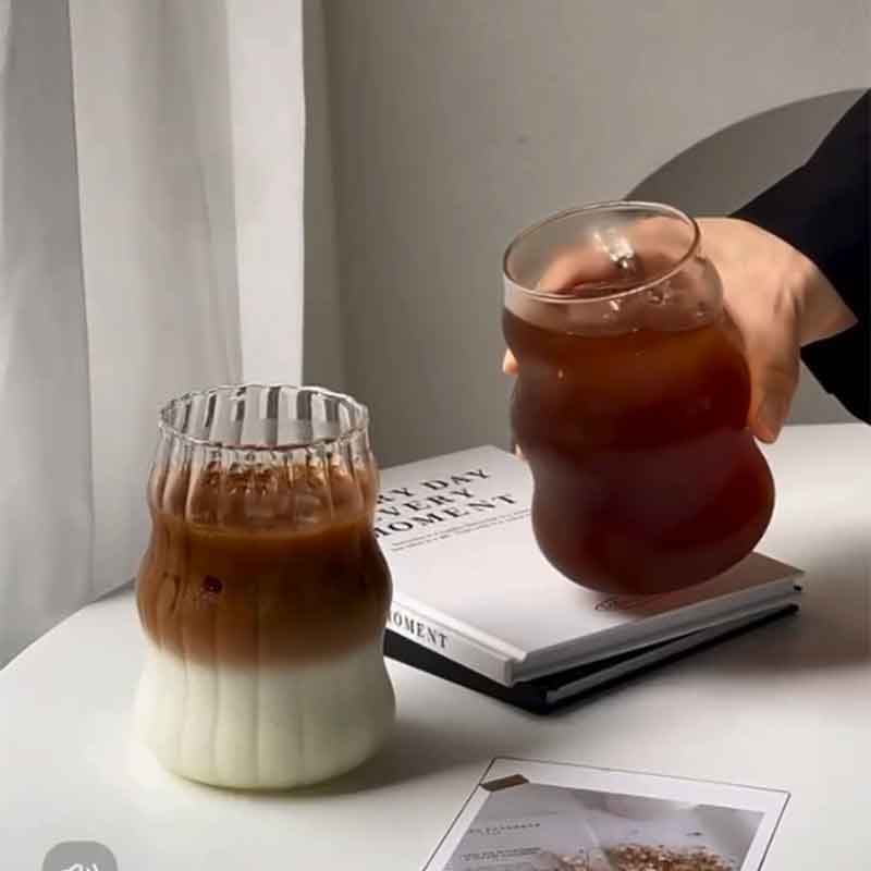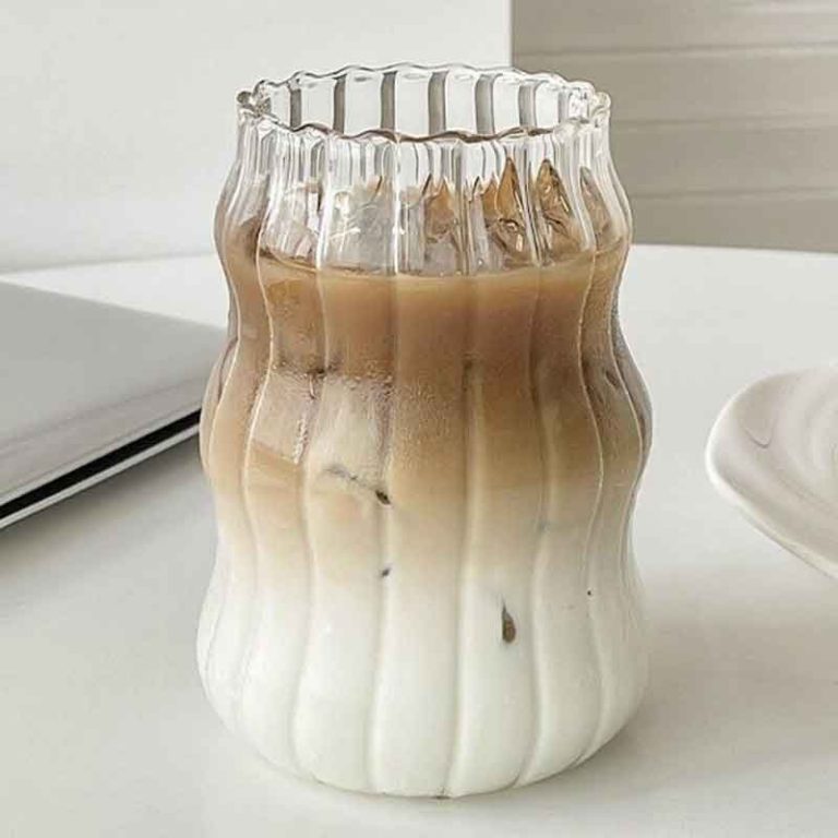 كوب زجاجي أنيق 530 مل بتصميم مموج مقاوم للحرارةكوب زجاجي أنيق 530 مل بتصميم مموج مقاوم للحرارة