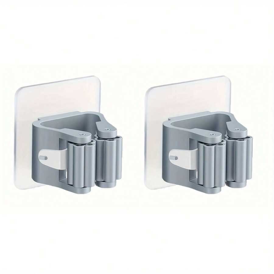 قطعتين حامل المكنسة بلاصق قوي ومشابك للتثبيتقطعتين حامل المكنسة بلاصق قوي ومشابك للتثبيت