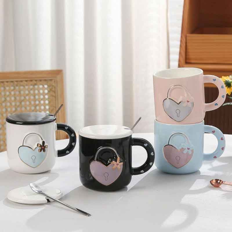 كوب سيراميك بغطاء وملعقة "Love Unlock" سعة 350 ملكوب سيراميك بغطاء وملعقة “Love Unlock” سعة 350 مل