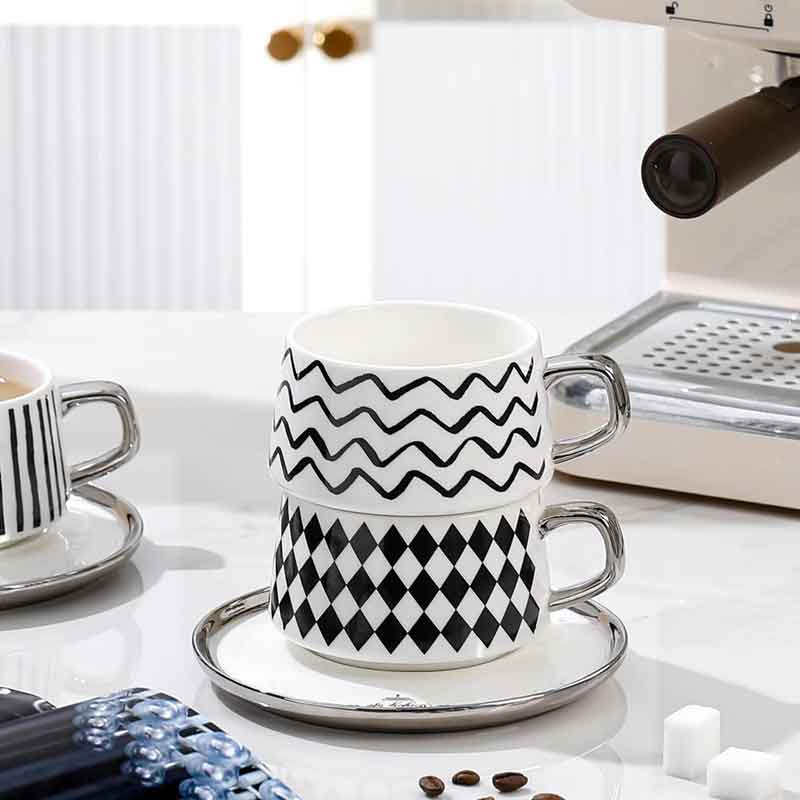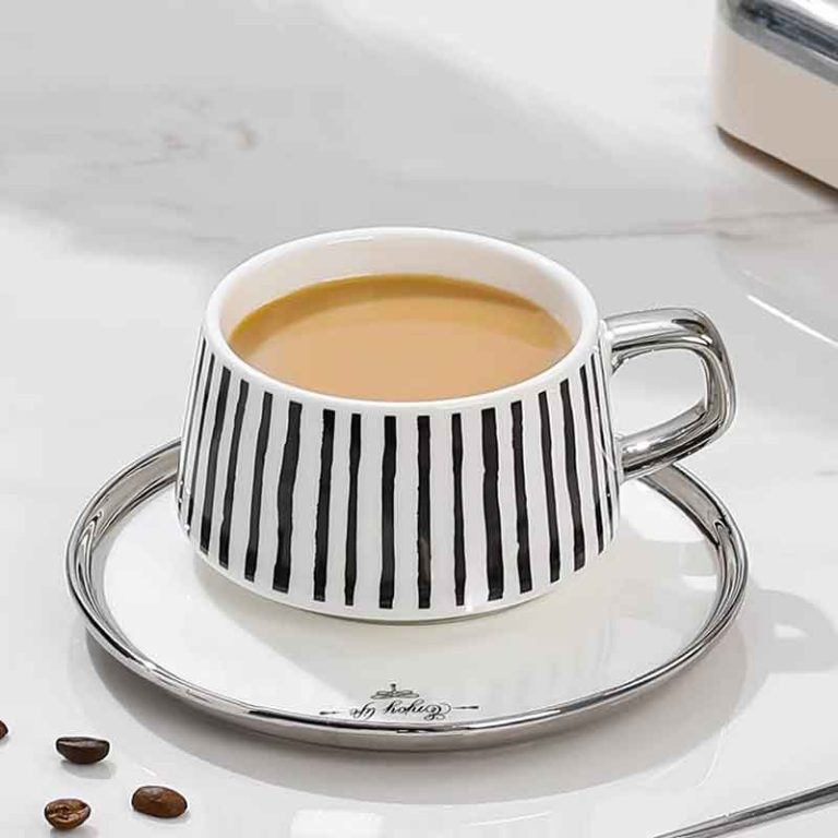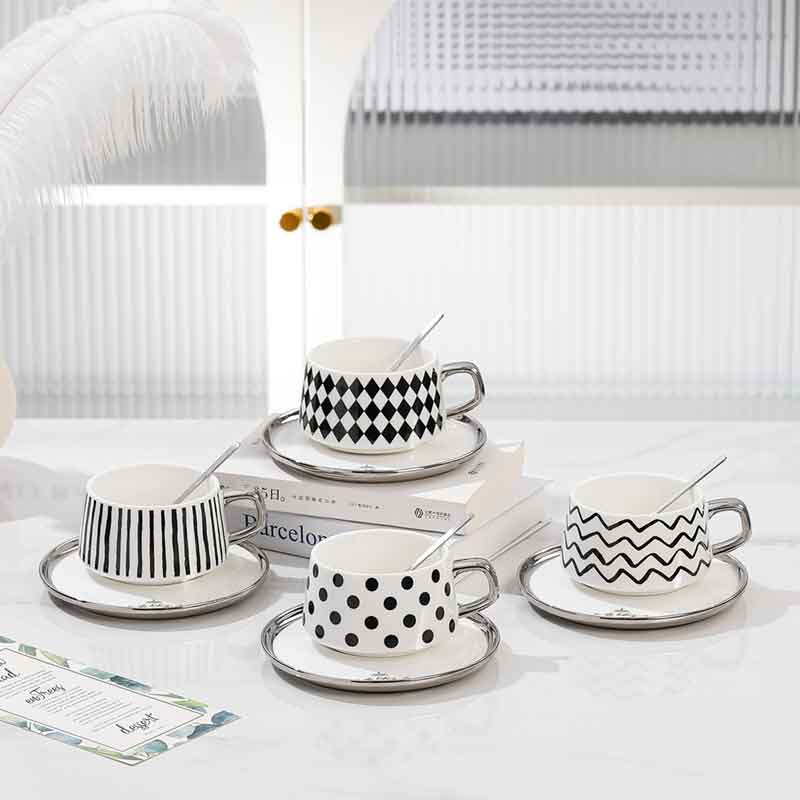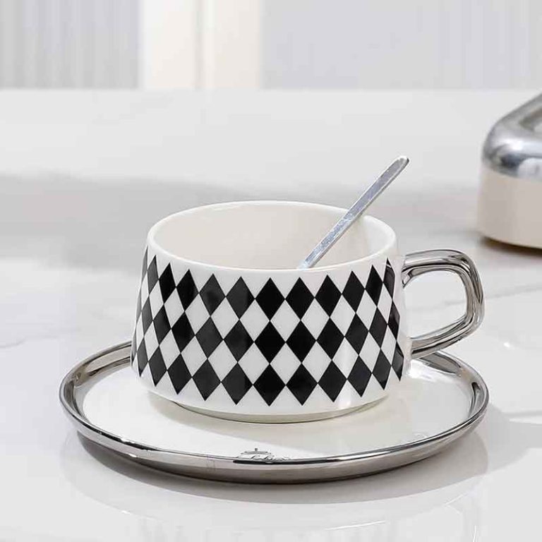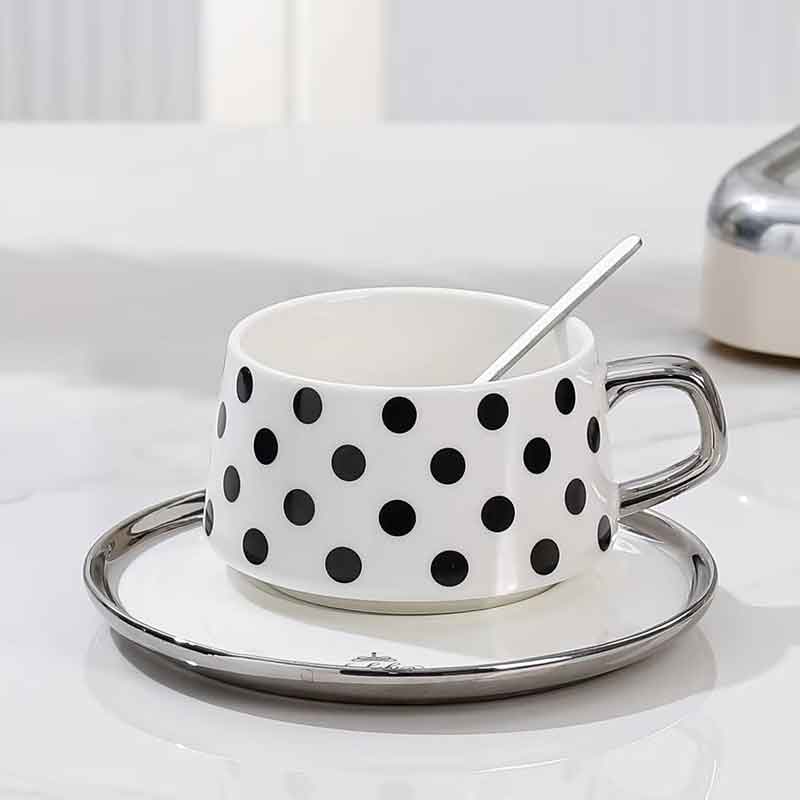 كوب بورسلان فاخر مع صحن وملعقة