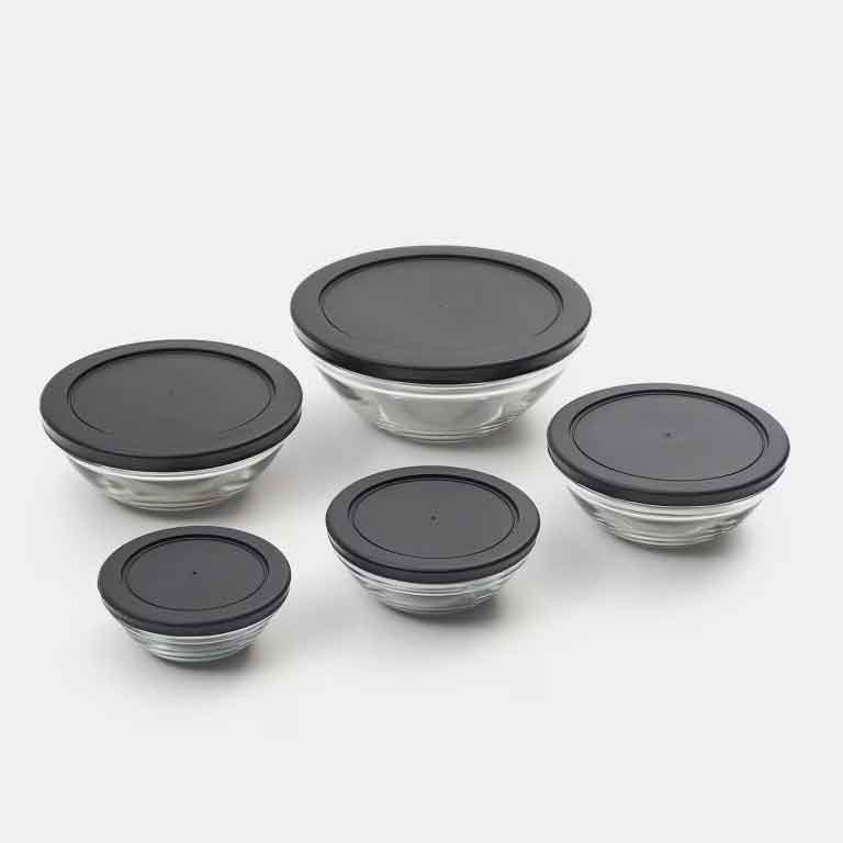 يحتوي الطقم على 5 جاطات زجاجية بأحجام مختلفة مع أغطية محكمة تحفظ النكهات وتمنع تسرب الروائح، لتناسب جميع احتياجاتك في المطبخ.