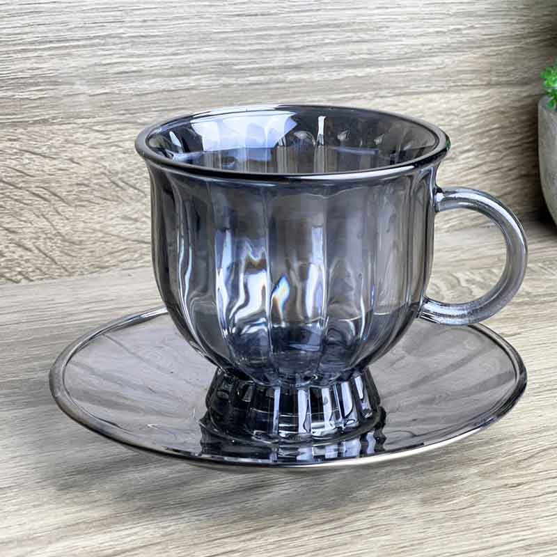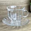طقم كاسات شاي زجاجي مع صحن – 12 قطعة بتصميم زهرة اللوتس