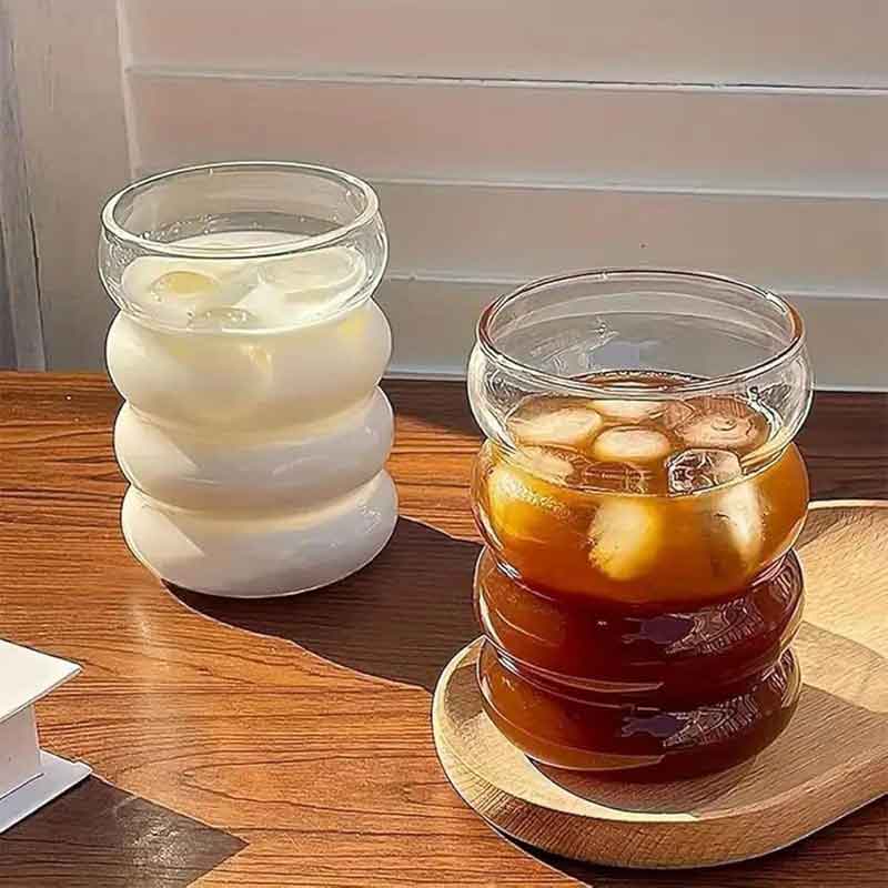 كوب زجاجي 300 مل بتصميم مموج عصري للمشروبات الباردة والساخنة