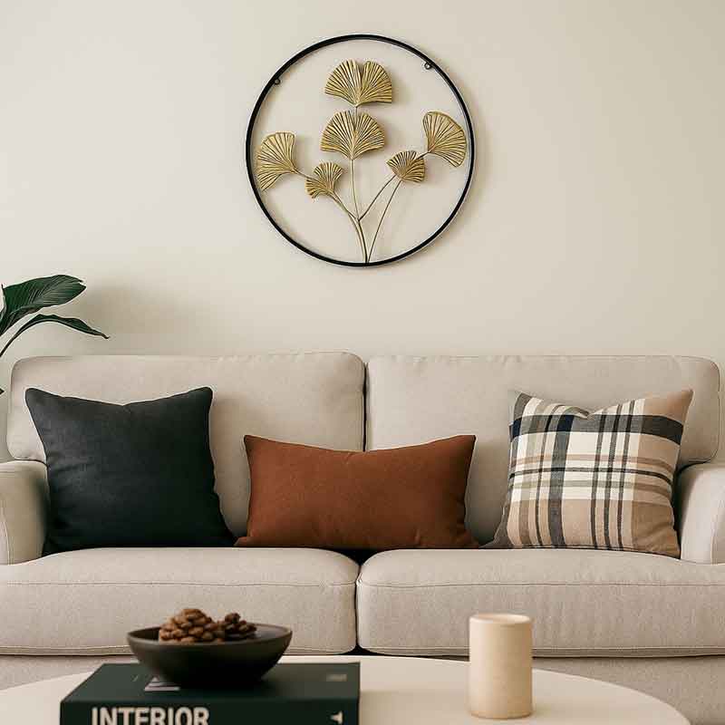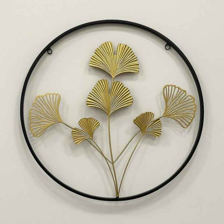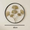 لوحة حائط معدنية دائرية بتصميم أوراق الجنكو – 60 سم)
