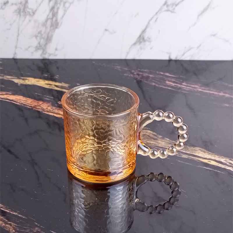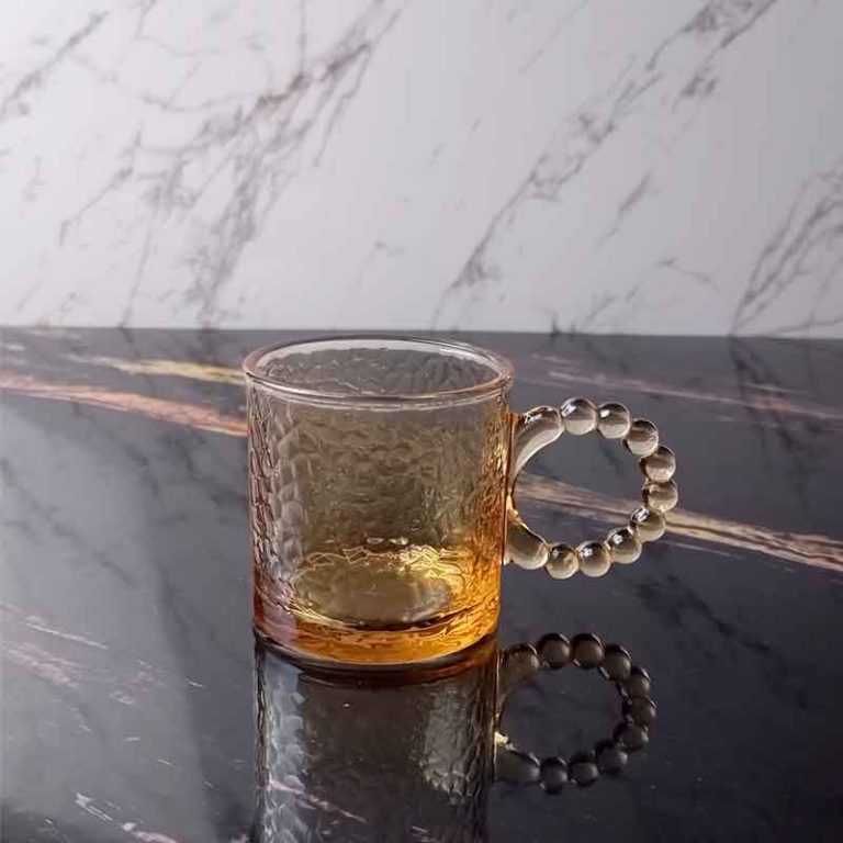 تصميم الكوب يتميز بيد كسوار اللؤلؤ فريد يُضفي لمسة من الرقي والجمال على طاولة التقديم، مما يجعله مثاليًا لتقديم الشاي أو القهوة العربية أو التركية.