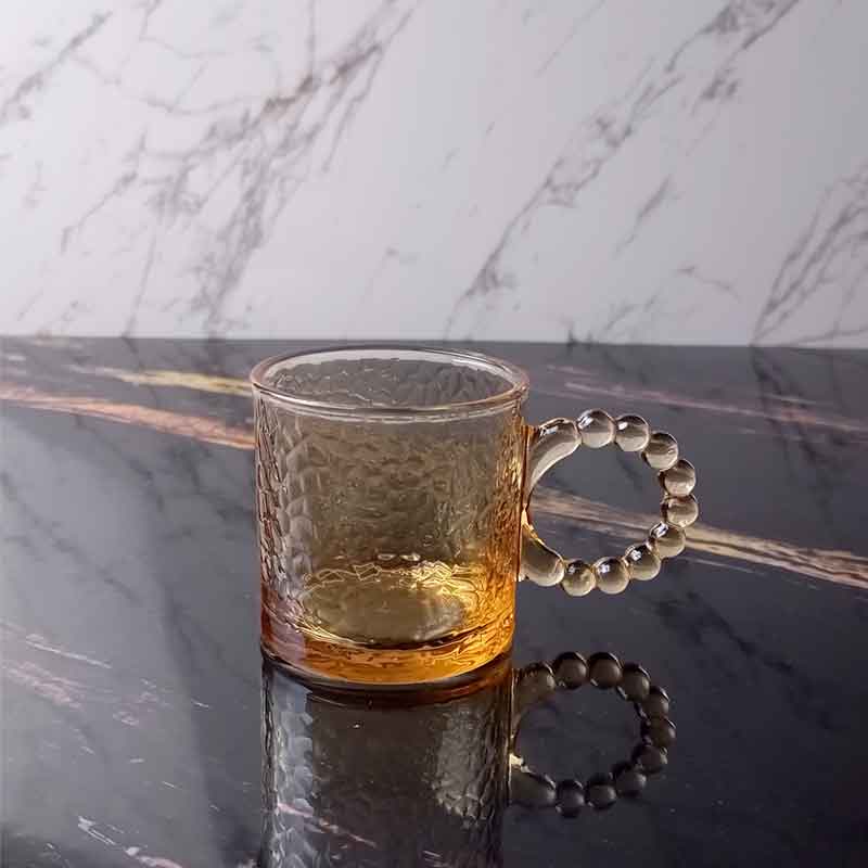 طقم فناجين زجاجية بلون عسلي ويد سوار اللؤلؤ (6 قطع)طقم فناجين زجاجية بلون عسلي ويد سوار اللؤلؤ (6 قطع)