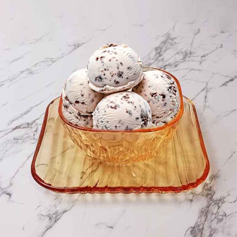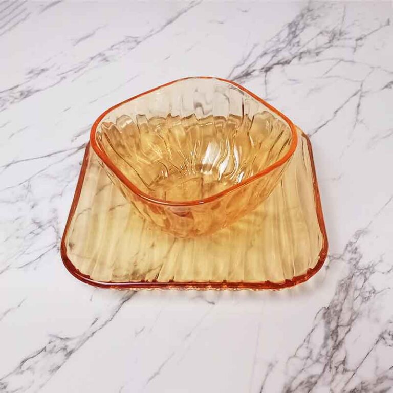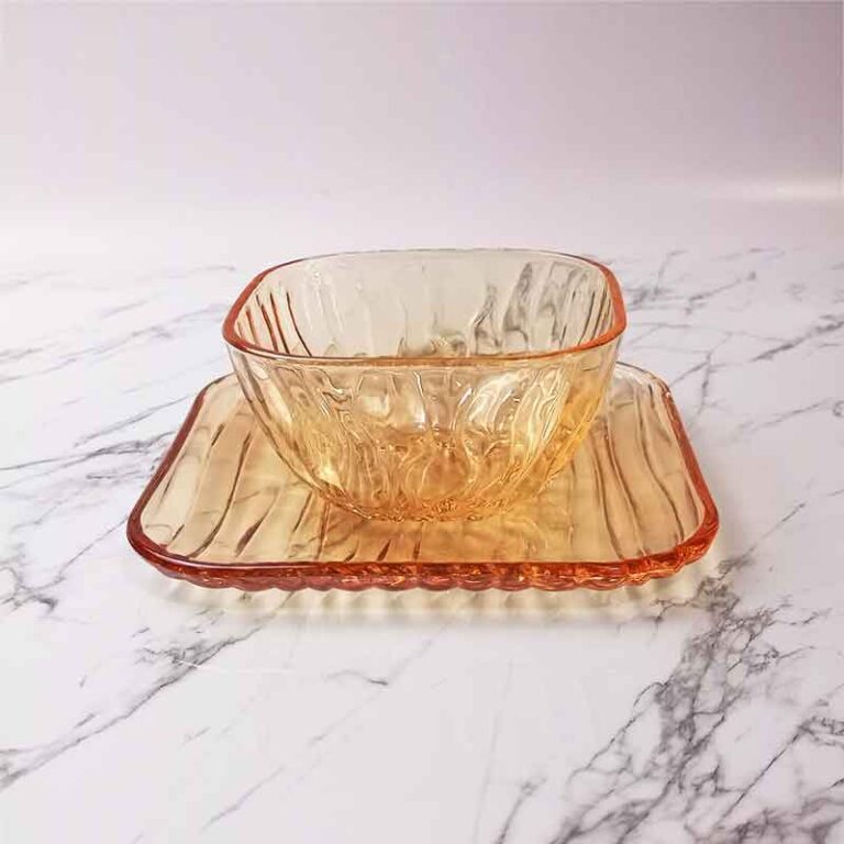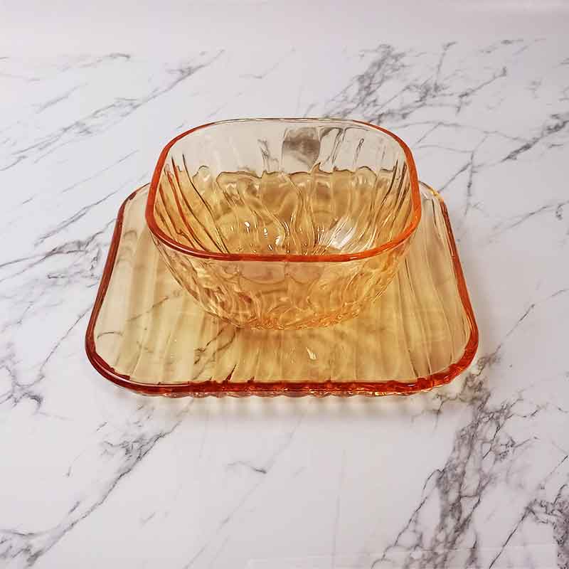 مصنوع من زجاج عالي الجودة بتصميم مستوحى من الكريستال الجليدي، يمنح الطقم أناقة بصرية رائعة، ويعكس الضوء بشكل جذاب ليضفي لمسة من الفخامة على كل مناسبة. سواء كنت تقدم سلطة فواكه، أو حلويات باردة، أو مقبلات مميزة، فإن طقم الزبادي المربع العسلي سيكون الخيار المثالي لضيوفك.