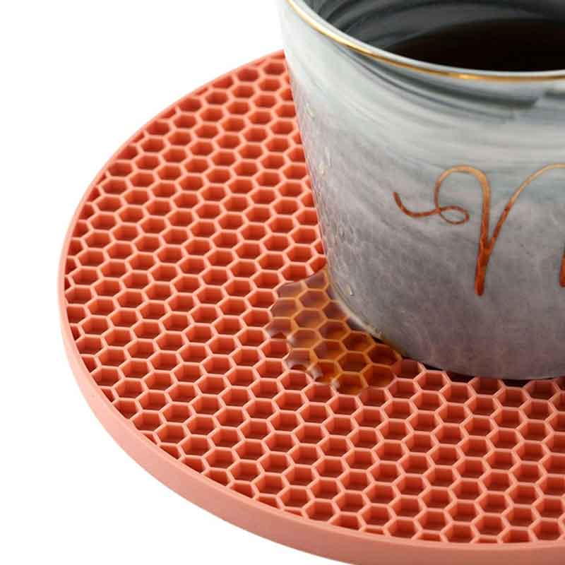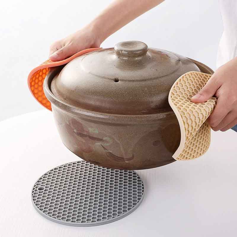 تصميم خلية النحل يمنحها مظهرًا عصريًا ويساعد على توزيع الحرارة بشكل متساوٍ، مما يجعلها مثالية للاستخدام اليومي في المطبخ أو غرفة الطعام أو حتى أثناء النزهات. بفضل خامتها المرنة، يمكن استخدامها كقواعد للأكواب، أواني الطهي، أو حتى كعوازل للأيدي عند حمل الأطباق الساخنة.
