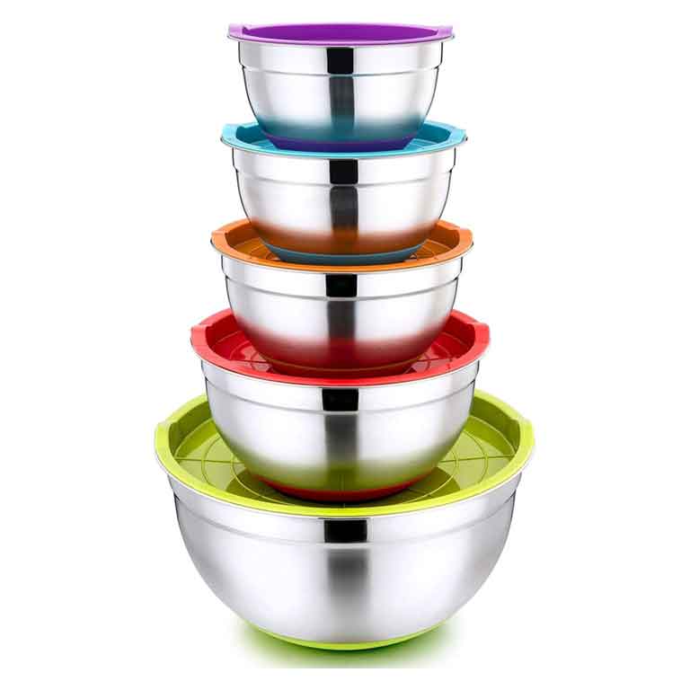 طقم زبادي خلط ستانلس ستيل مع أغطية – 10 قطع