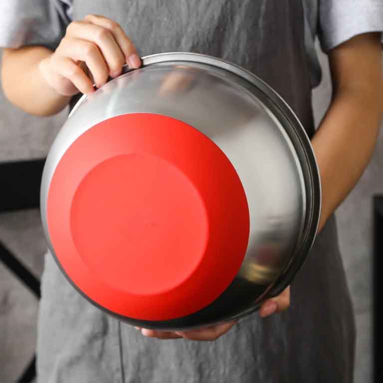 مصنوع من ستانلس ستيل نقي عالي الجودة مقاوم للصدأ مع أغطية بلاستيكية آمنة للطعام، خالٍ من المواد الضارة. يتميز بتصميم داخلي مصقول لسهولة التنظيف وقاعدة ملونة مانعة للانزلاق تمنح ثباتًا أكبر أثناء الاستخدام.