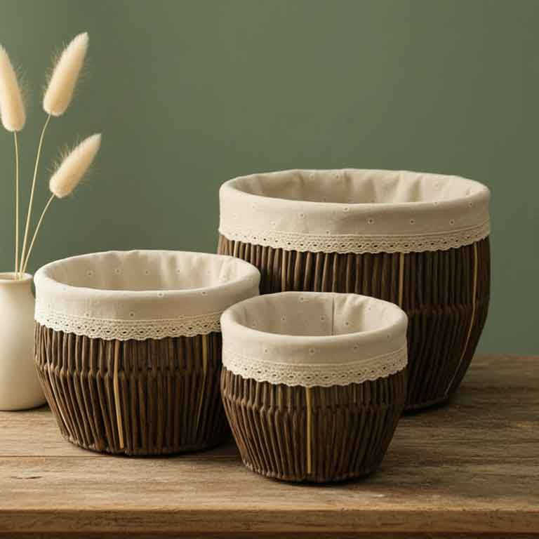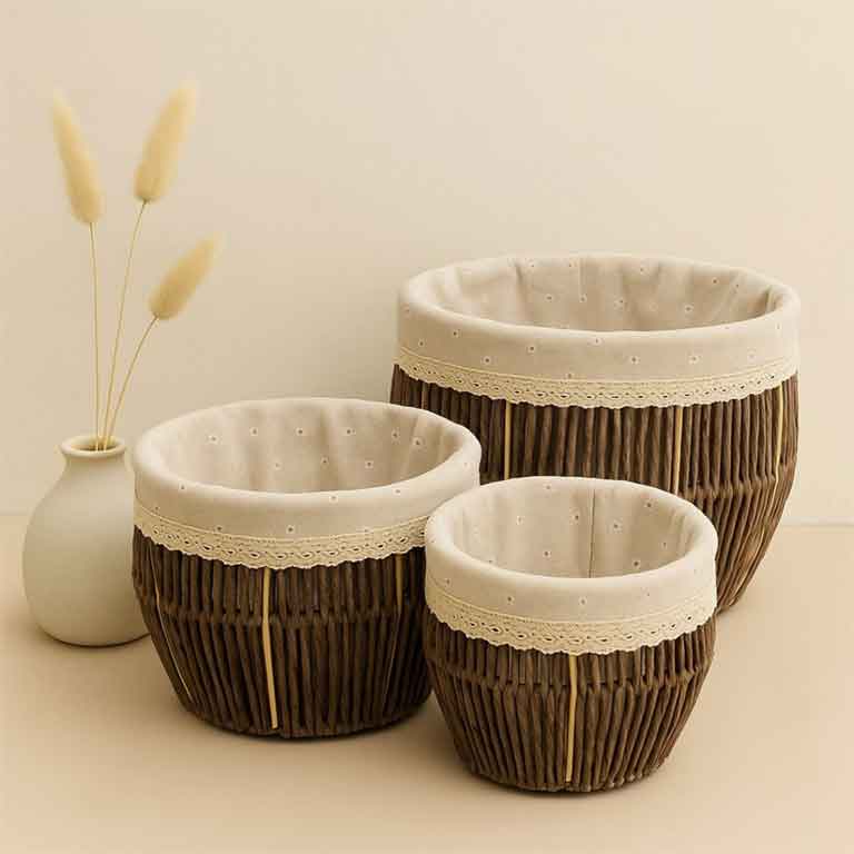 أضيفي لمسة من الأناقة الطبيعية والتنظيم العملي إلى منزلك مع طقم السلال القش المبطنة بالقماش من مسك جاليري.