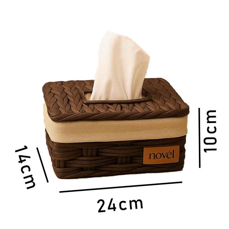 صندوق المناديل: بحجم 14×24 سم وارتفاع 10 سم – تصميم أنيق يسهل فتحه واستخدامه.